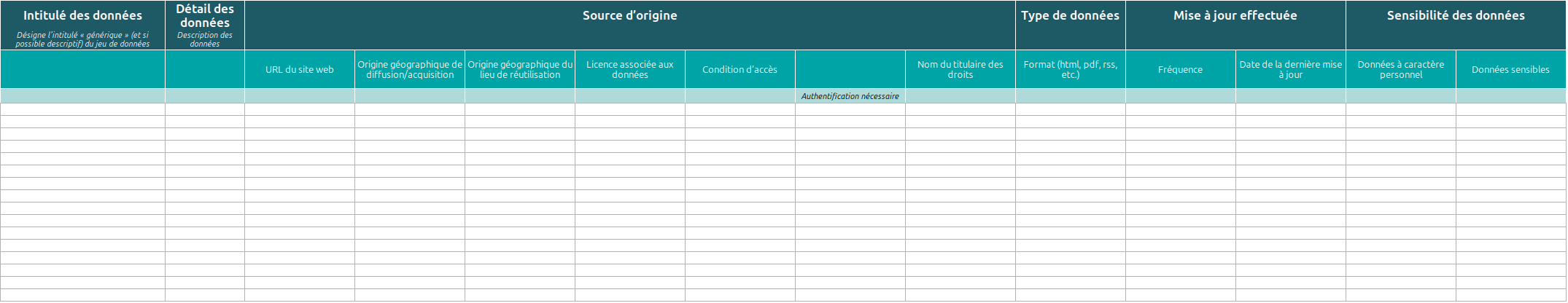 Vous trouverez dans ce tableau, différentes catégories clefs pour décrire les données collectées.