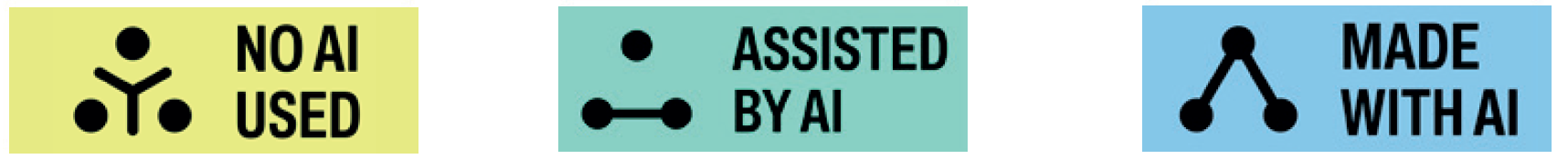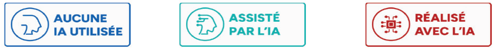 - Être attentif aux marquages apposés par les outils utilisant de l’IAG3. S’il y a lieu, des logos existent pour préciser le degré d’utilisation de l’IA :